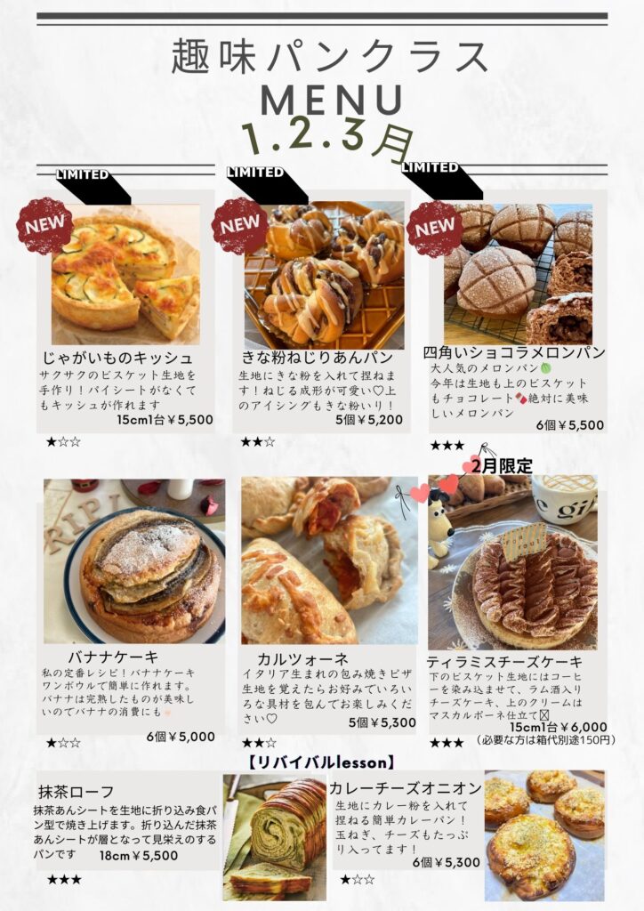 こちらも1~3月の趣味パンクラスのメニューなんです⬇️⬇️