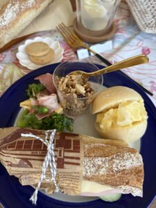 私が事前に焼いたバケットでこんな風に食べると美味しい♥️っていうアレンジを伝えながらlunchで食べます😋この日はカスクートというフランスパンにハムやチーズをはさんで食べるサンドウィッチのご紹介✨️
